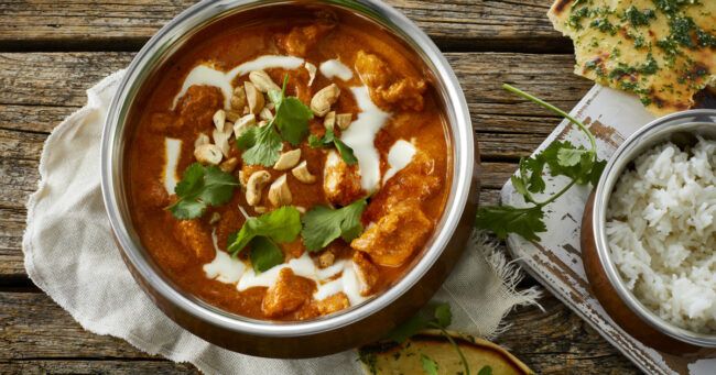 Butter Chicken is a rich and creamy Indian dish made with tender pieces of chicken simmered in a velvety tomato-based sauce.