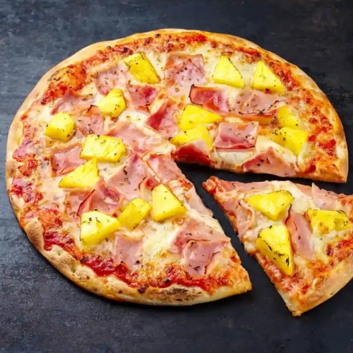 Pizza Hawaii is a sweet-and-savory favorite known for its tropical twist. A classic tomato sauce and cheese base is paired with juicy pineapple pieces and salty ham, creating a unique contrast that appeals to adventurous taste buds.