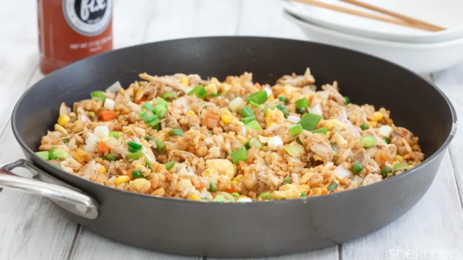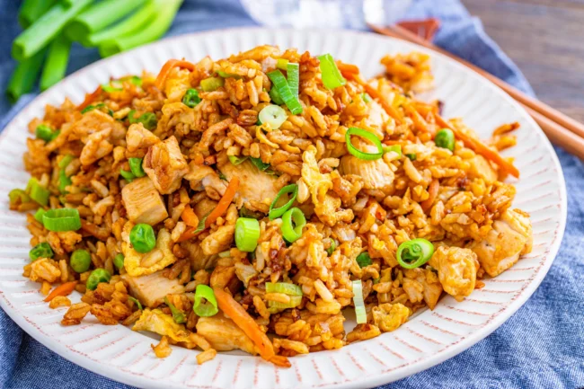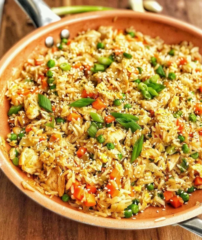 Chicken Fried Rice is a savory, wok-fried rice dish featuring tender chopped chicken, onions, and a blend of flavorful spices.