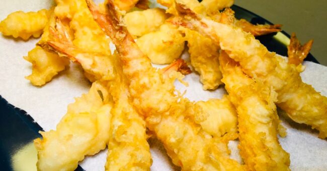 Prawn Tempura consists of five pieces of fresh shrimp coated in a light, airy batter and deep-fried to a delicate golden crisp.